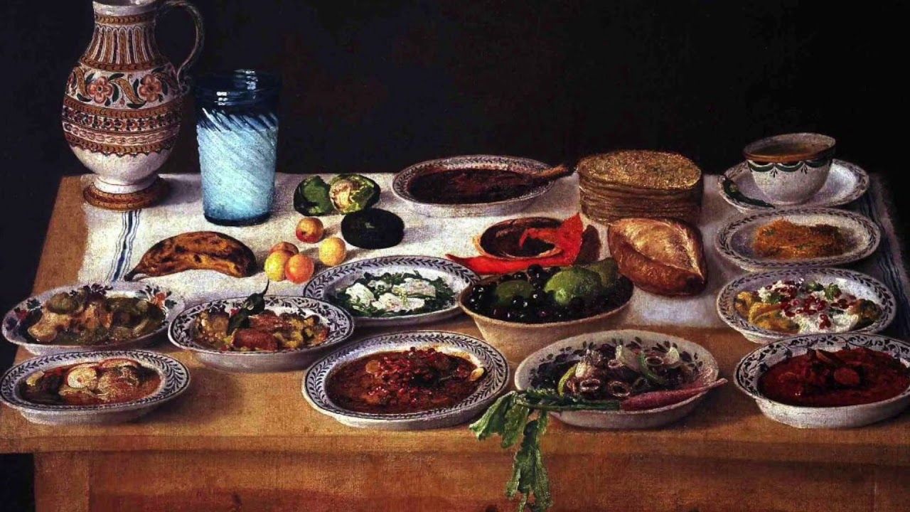 Стол стал более изысканным, но сохранил щедрость и разнообразие. Появились фарфоровая посуда, столовые приборы, сложные рецепты. Но на столе по-прежнему присутствовали: